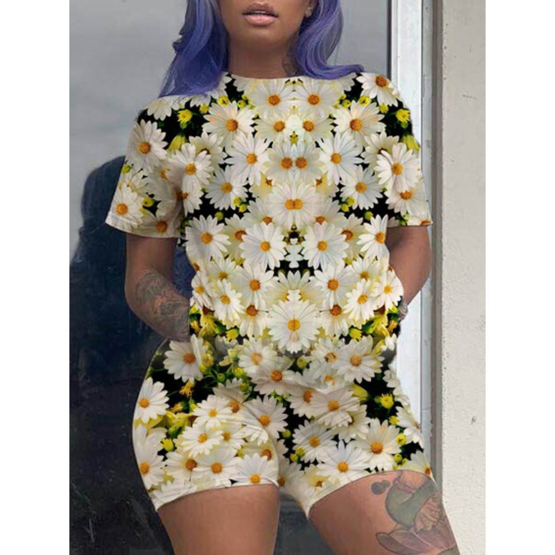 LW Print Mixed Two-piece Shorts Set