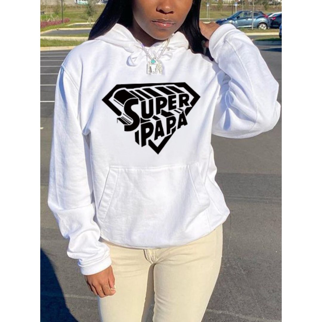 LW BASICS Letter Print Kangaroo Pocket Hoodie
