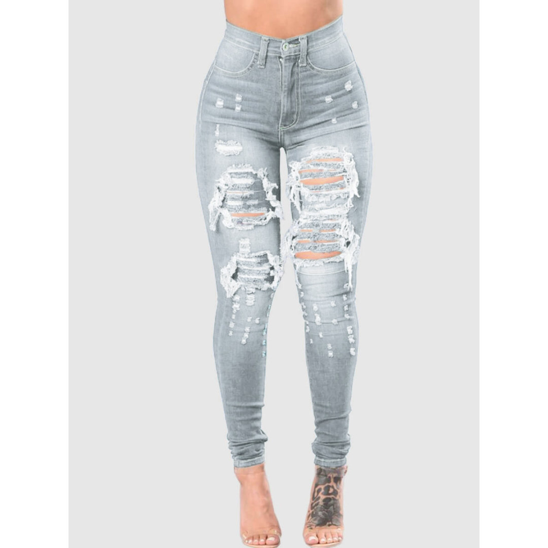 LW Plus Size Puff Sleeve Ripped Denim Jacket