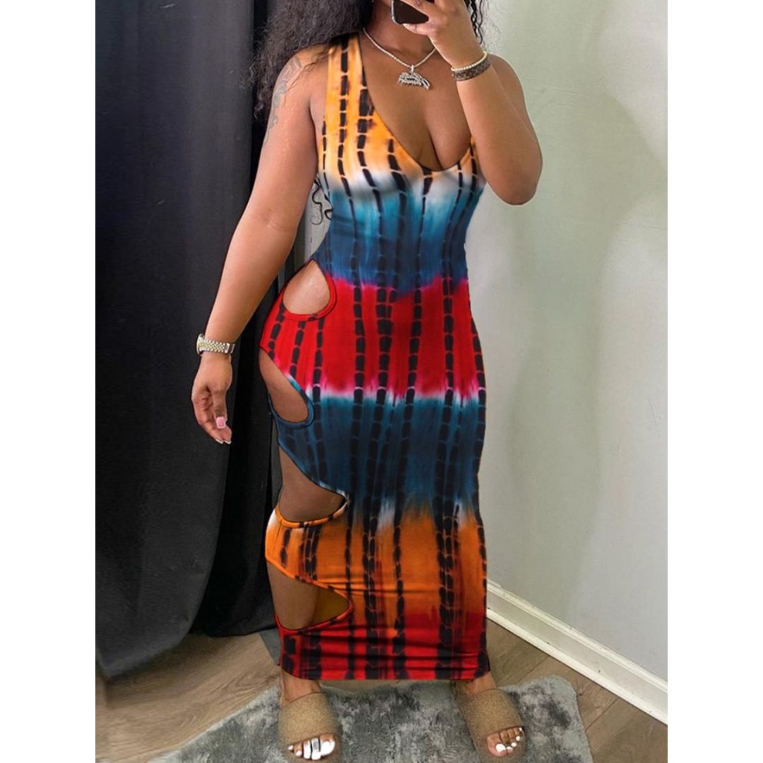 LW Casual Tie-dye Hollow-out Multicolor Ankle Length Dress