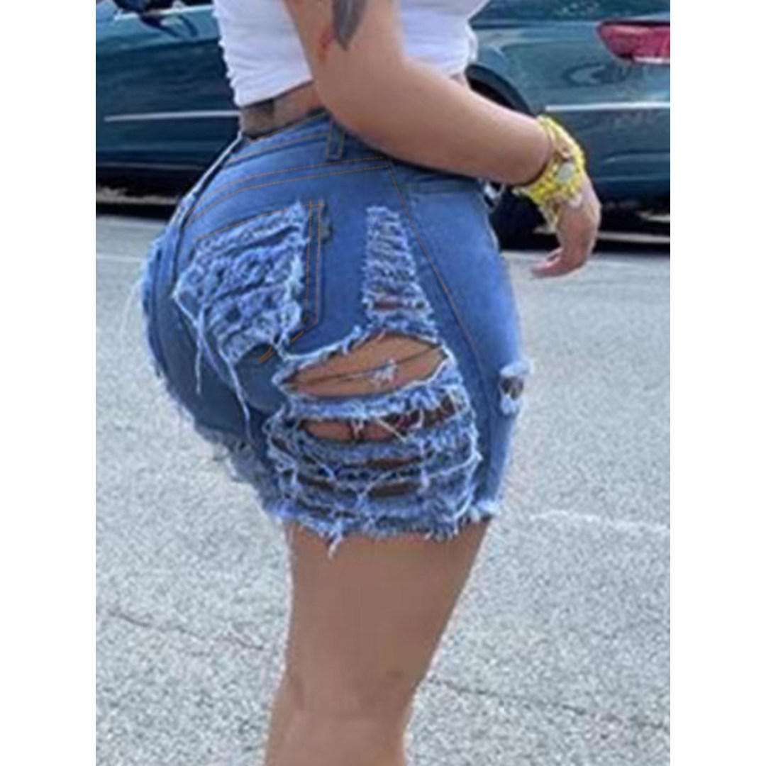 LW High Stretchy Tassel Design Ripped Denim Shorts