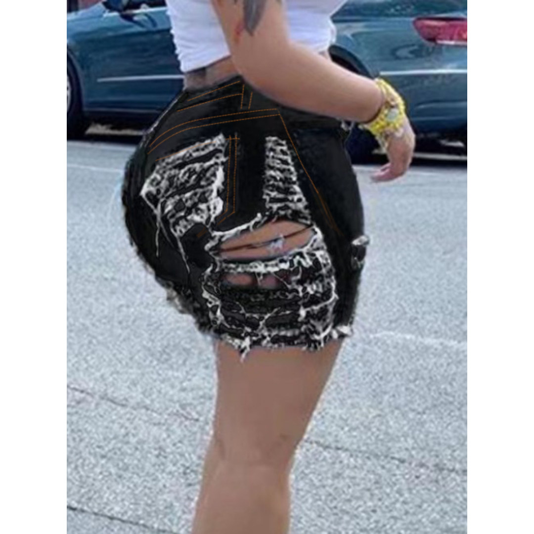 LW Mid Waist Ripped Denim Shorts