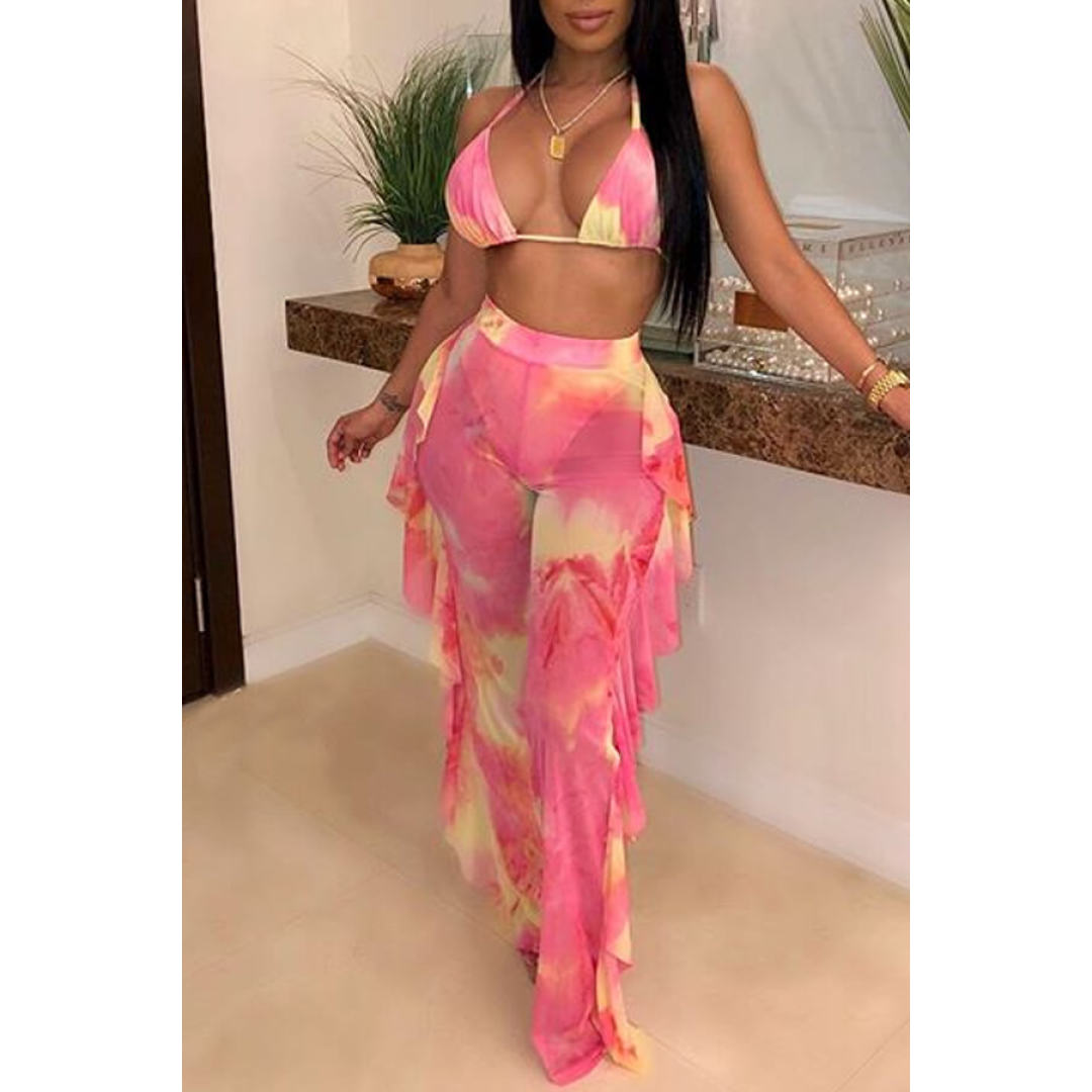 LW Sexy Round Neck Camouflage Printed Two-piece Swimwear
