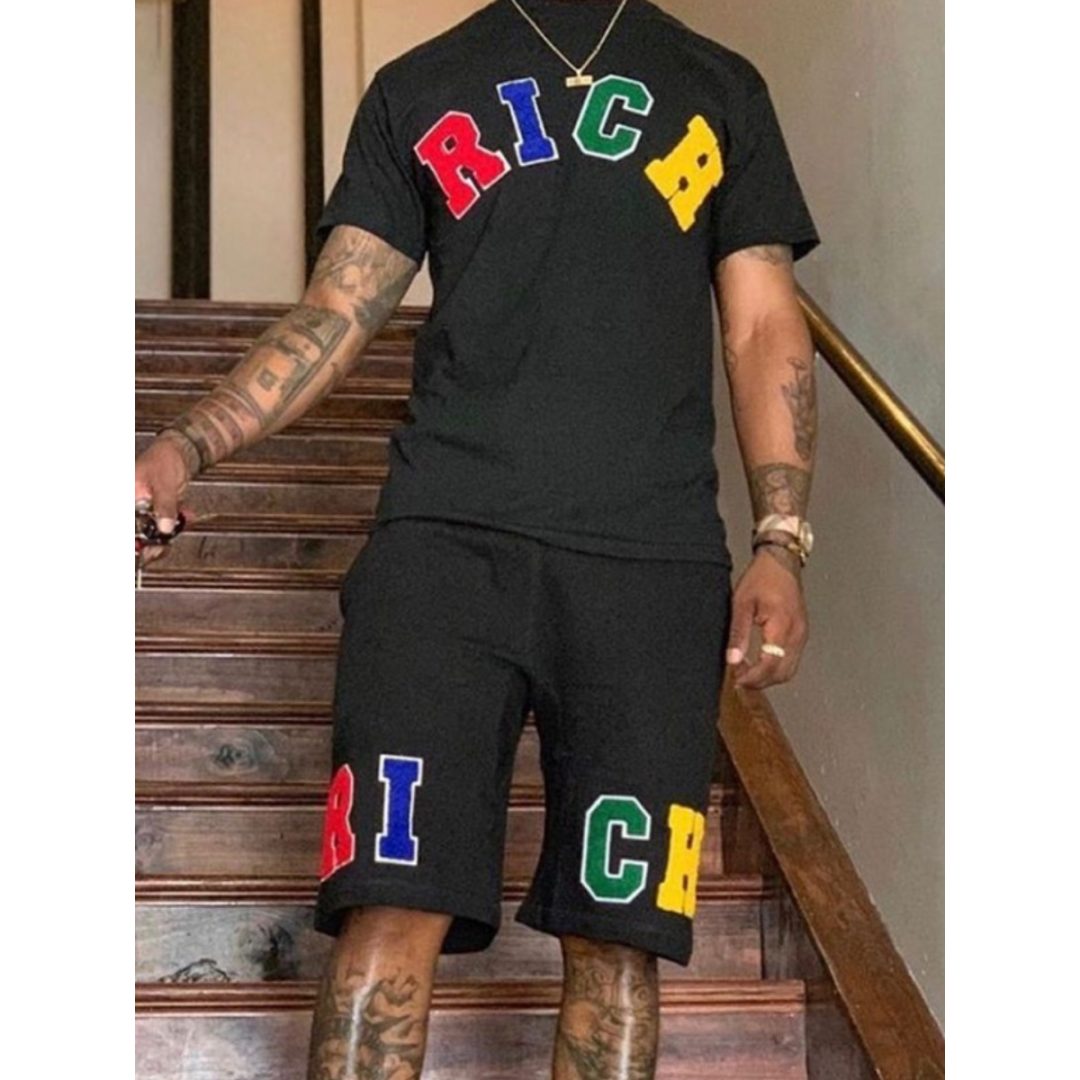 LW Men Round Neck Letter Print Shorts Set