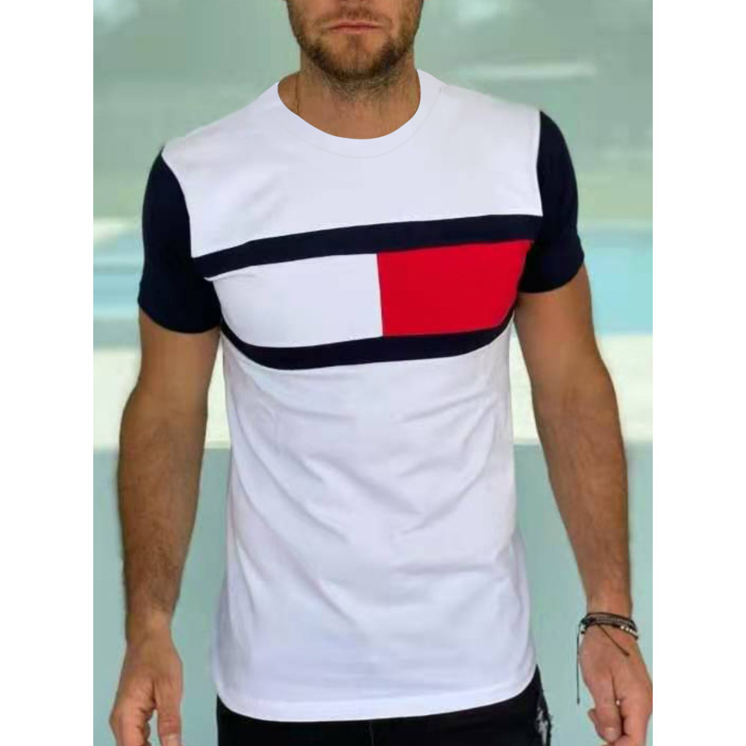 LW Men Casual O Neck Color-lump White T-shirt