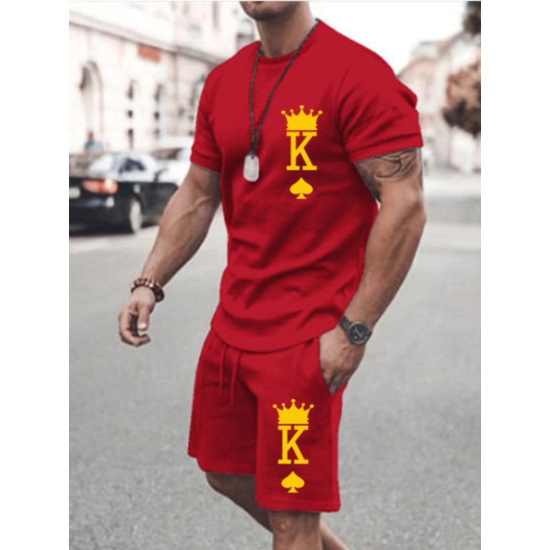 LW Men King Letter Print Shorts Set