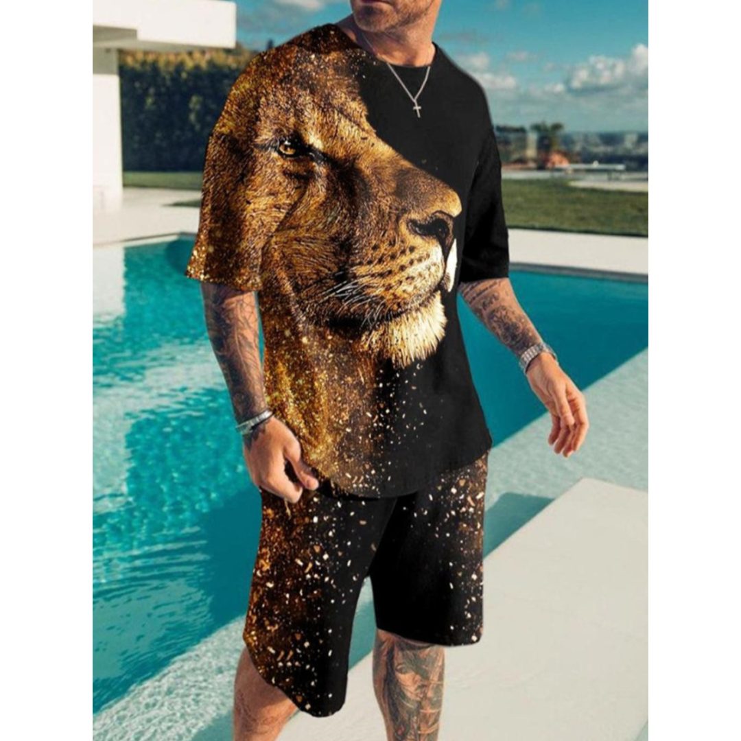 LW Men Round Neck Animal Print Shorts Set