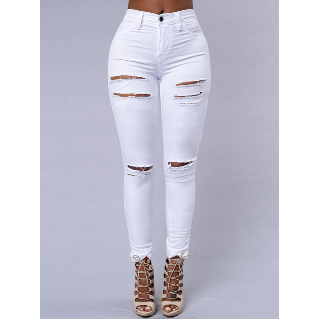 LW High Stretchy Broken Holes White Jeans