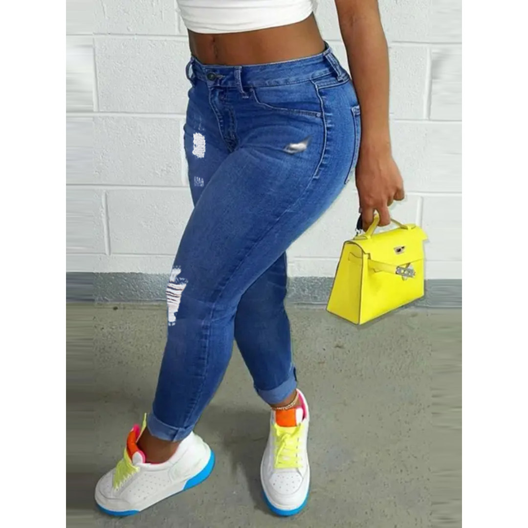 LW Casual High Stretchy Fold Design Skinny Blue Jeans