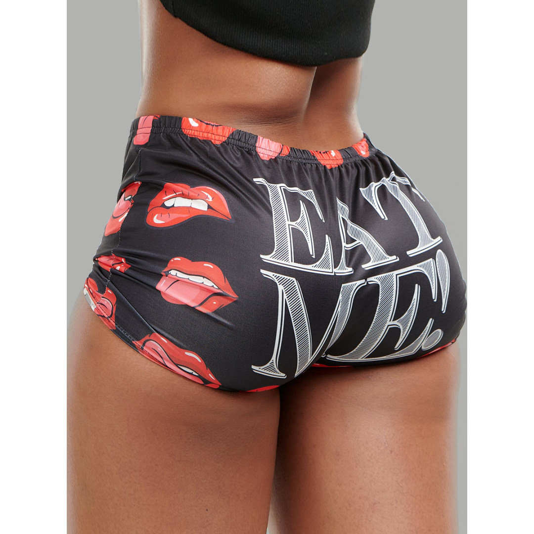 LW Plus Size Chic Leopard Lip Print Purple Two-piece Shorts Set