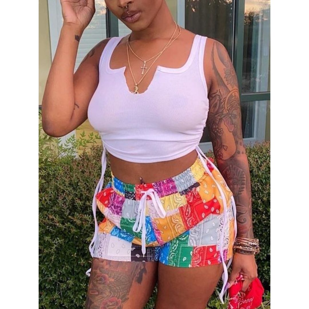 LW Rib-Knit Cashew Print Drawstring Shorts Set