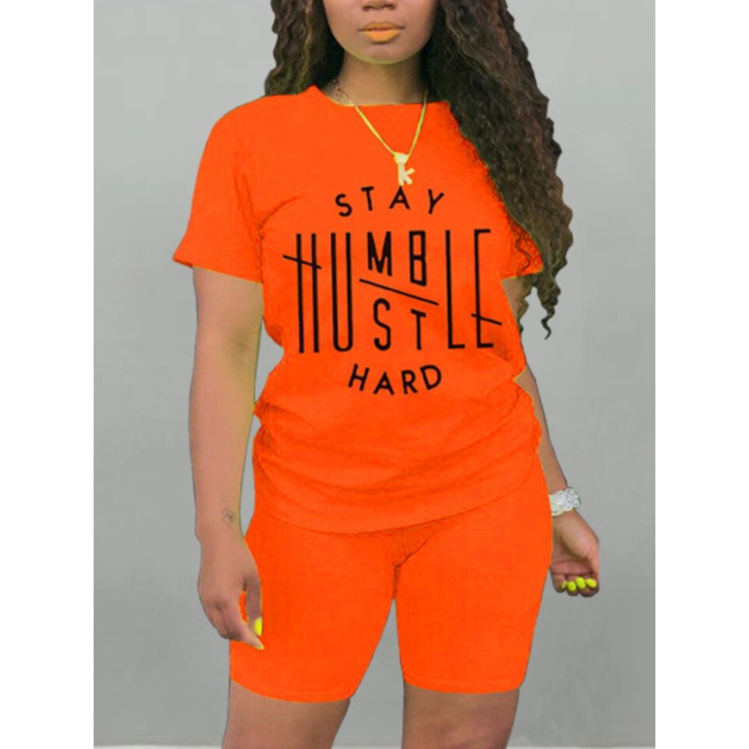 LW COTTON Plus Size Casual Batwing Sleeve Letter Print Croci Two-piece Shorts Set