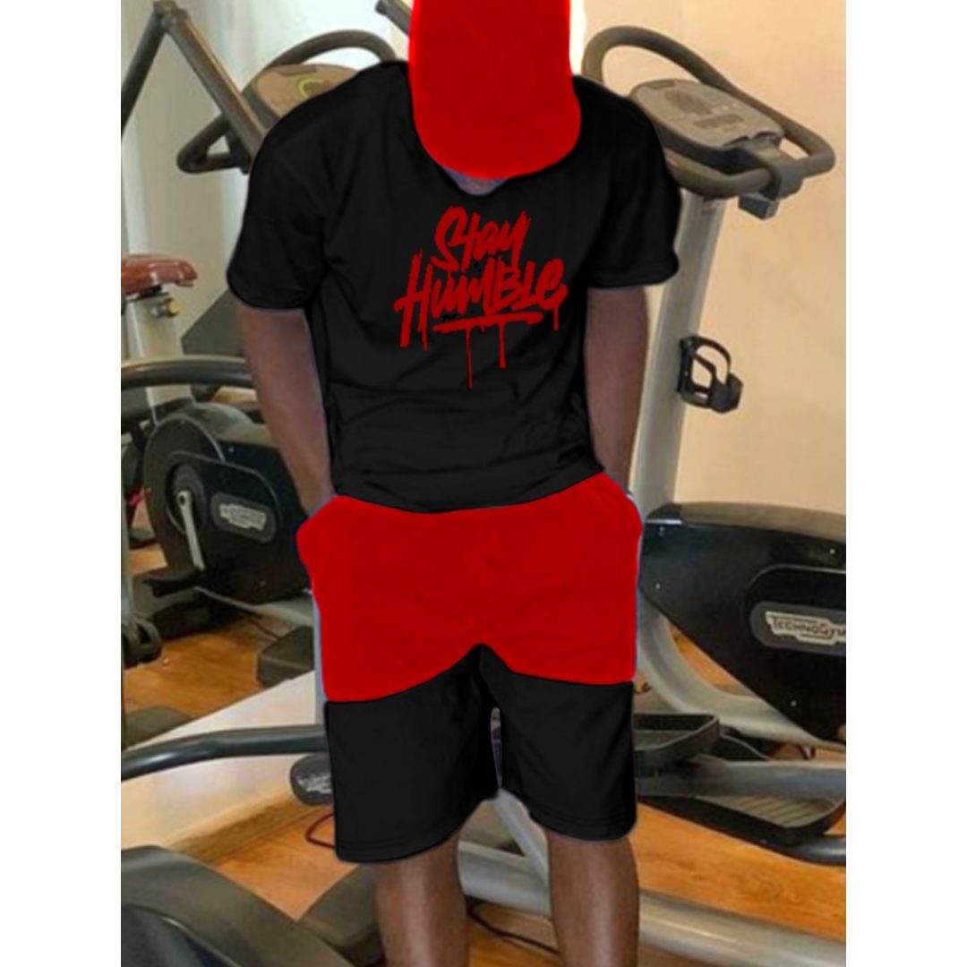 LW Men Letter Print Drawstring Shorts Set