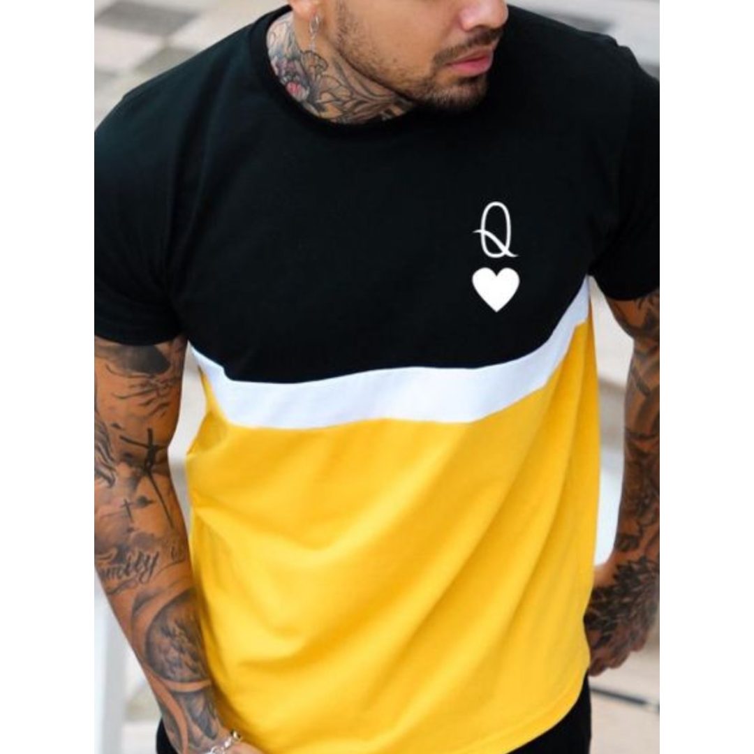 LW Men Casual Color-lump Patchwork Yellow T-shirt
