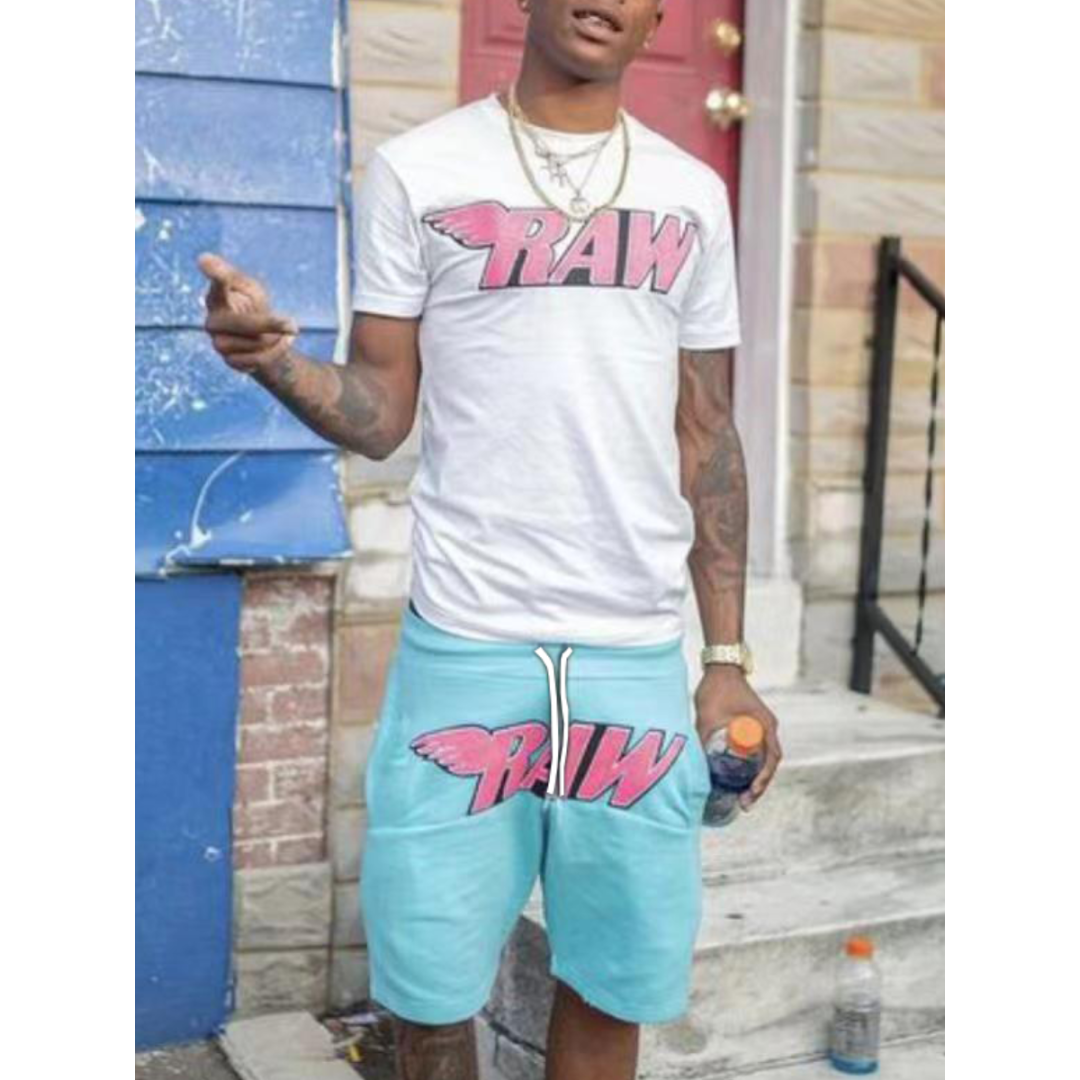 LW Casual Round Neck Drawstring Pink Two Piece Shorts Set
