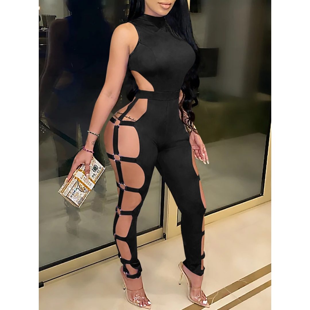 LW SXY Cut Out Metal Ring Decor Skinny Jumpsuit