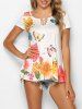 Plus Size Flower Cold Shoulder Flare Sleeve Ruffle T shirt
