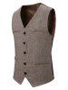 Metal Chain Herringbone Button Up Tweed Vest