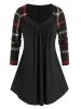 Plus Size Plaid Sleeve Pleated Top