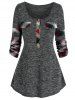 Plaid Panel Half Button Marled T Shirt
