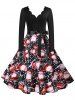 Christmas Snowflake Santa Claus Scalloped Belted V Neck Dress