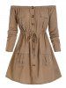 Plus Size Off Shoulder Pocket Drawstring Cargo Dress