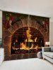 2 Panels Christmas Fireplace Stockings Print Curtains