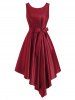 Pleated Waisted Belted Sleeveless Asymmetrical Dress
