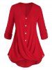 Plus Size Crossover Button Tab Sleeve Curved Blouse