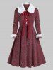 Plus Size Faux Fur Panel Bowknot Ribbon Tie Sweater Dress