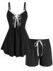 Plus Size Lace Panel Tie Bowknot Cami Pajamas Set