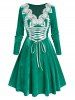 Plus Size Velvet Lace up Applique Panel Long Sleeve Dress