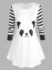 Plus Size Panda Pattern Striped Sleeve T Shirt