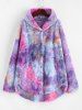 Plus Size Tie Dye Hooded Faux Fur Single Breasted Coat