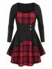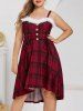 Plus Size Plaid Lace up Faux Fur Insert A Line Dress