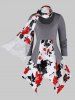 Plus Size Handkerchief Floral Print T Shirt With Scarf