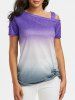 Cold Shoulder Ombre Knotted Hem T Shirt