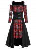 Christmas Off Shoulder Plaid Elk Print Dress and Buckle Top Set
