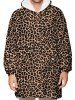 Leopard Print Kangaroo Pocket Fleece Blanket Hoodie