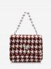Houndstooth Butterfly Pattern Faux Pearl Cover Crossbody Bag