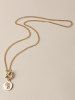 Engraved Portrait Coin Lariat Chain Necklace