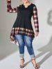 Plus Size Keyhole Flounce Plaid High Low T Shirt