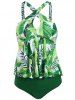 Leaves Print Criss Cross Keyhole Tankini Swimwear