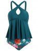 Floral Leaves Print Criss Cross Keyhole Tankini Swimwear