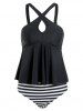 Polka Dot Stripes Criss Cross Keyhole Tankini Swimwear