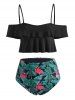 Tropical Tree Flamingo Flounce Tummy Control Tankini Swimwear