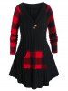Plus Size Cable Knit Plaid Kangaroo Pocket Curved Sweater