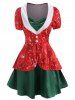 Christmas 3D Rhinestone Print Ruched Button Embellished Twofer Dress