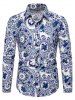 Chinese Porcelain Plate Print Retro Long Sleeve Shirt