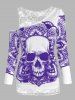 Skull Graphic Cold Shoulder Two Piece T Shirt Sets